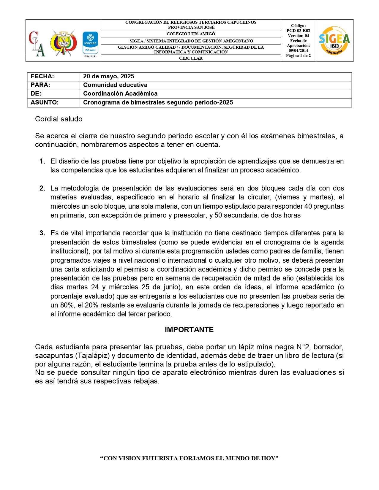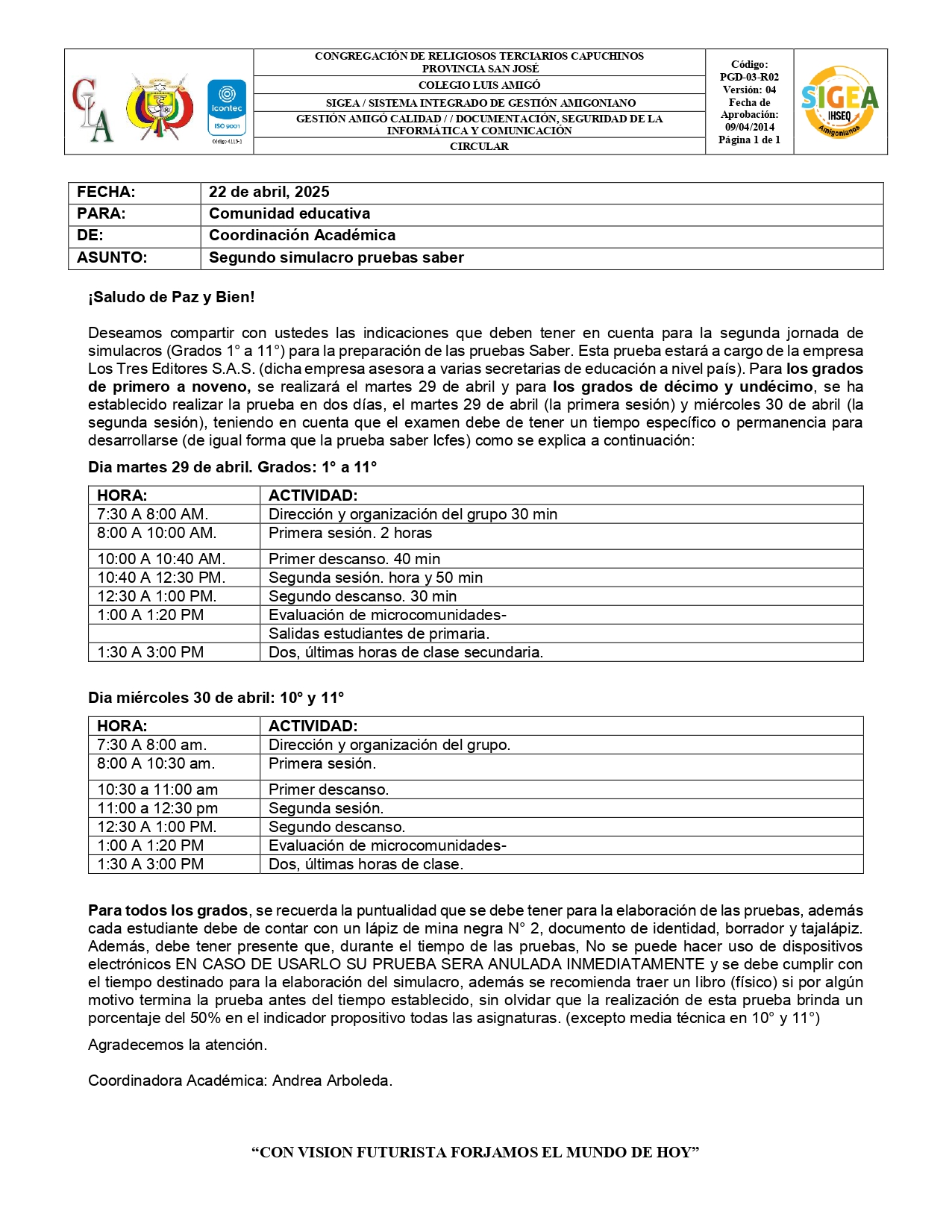 ¡Paz y Bien! La institución educativa Colegio Luis Amigó...